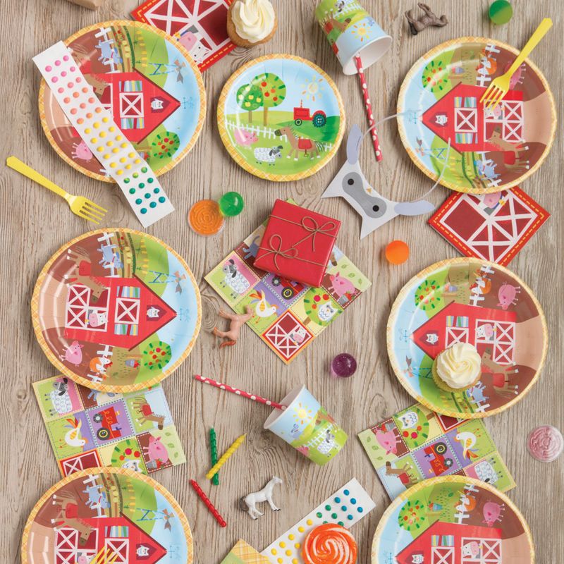 Mit unserer Bauernhof & Traktor Party Deko erlebt dein Event einen rustikalen Landhaus-Charme, der besonders kleine Bauernhof-Fans begeistert. Ob zum Kindergeburtstag oder Familienfest - Motive wie Traktoren, Heuballen und süße Bauernhoftiere lassen Kinderaugen strahlen.