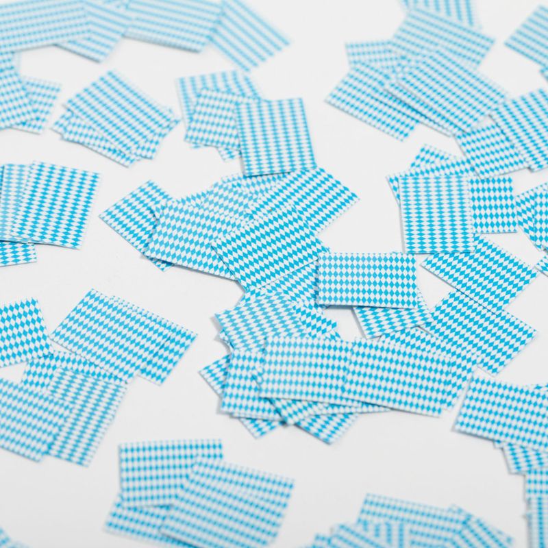 Die typische Dekoration für einen Geburtstag unter dem Motto "Bayerisch blau und weiß" könnte Folgendes beinhalten: