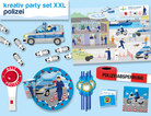 xxxl Partyset : 6 Becher, 6 Teller, 6 Papier Trinkhalme, 6 Platzsets , 6 Einladungskarten in Autoform, 10 m original Polizei Absperrband, 6 Polizeikellen, 6 Dienstausweise, 26 Fußspuren zum Spielen