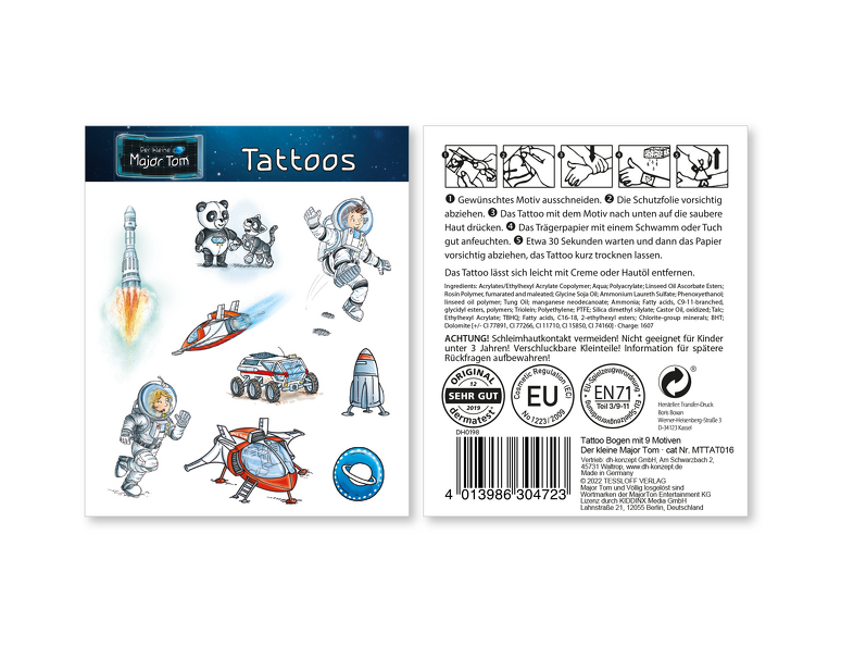 Tattoo Bogen mit 8 Motiven 108 x 136 mm Motiv Major Tom