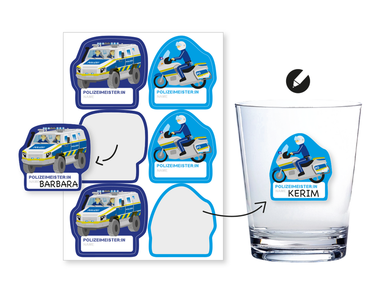 6 Namensaufkleber Polizei zum Beschriften