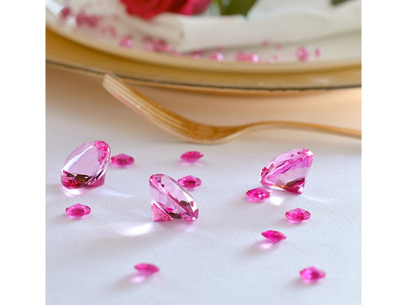Diese 100 Streudeko Diamanten rosa mit einer Größe von 1,2 cm sind unverzichtbar, um bei deinen Feiern und Festlichkeiten eine warme und einladende Atmosphäre zu schaffen.