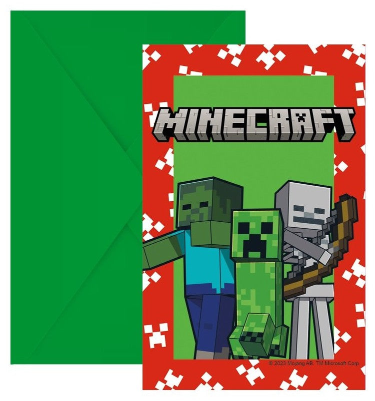 6 FSC Minecraft Universe Einladungskarten mit Umschlägen