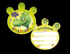 Damit auch alle kleinen Partygäste über den anstehenden Kindergeburtstag Bescheid wissen, verschickst du am besten rechteckig Einladungskarten. Auf den 8 grünen Karten lächelt einem ein Olchikind entgegen, darunter der Schriftzug "Einladung". Auf der Rückseite können dann folgende Felder ausgefüllt werden: "Für", "Du bist herzlich eingeladen zu...", "Datum/Uhrzeit", "Wo", "Kommst du? Ruf bitte an unter:.." und "Krötige Grüße". Verziert sind die 13 x 14 cm großen Olchi Einladungskarten mit kleinen Fliegen und Olchikindern.