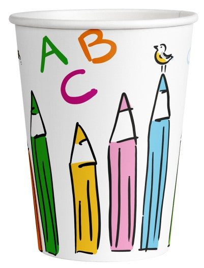 Es ist so weit - die Schule startet, was mit einem leckeren Stück Kuchen und der ganzen Familie gefeiert wird. Für den Kakao zu dem großen Stück Erdbeertorte haben wir die "mein erster Schultag" Becher. Die 8 Becher fassen 250ml und sind passend zum Anlass mit typischen Motiven wie Buntstiften oder dem Alphabet gestaltet.