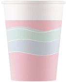 Mit den Pastell Party Pappbechern hast du 8 schicke Accessoires auf deiner Sommerparty. Die Becher bestechen mit schönem Pastelldesign, welches sich in wellenförmigen Mustern abwechselt. Damit landest du garantiert einen Hingucker auf deinem Sommerfest!
