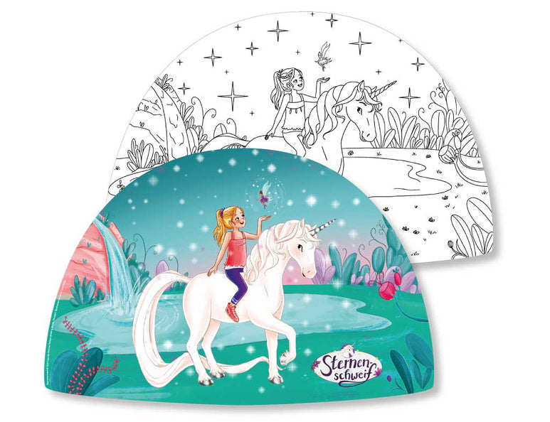 Platzsets aus 190 g Papier im Sternenschweif Design in Form gestanzt , Rückseite zum ausmalen 8 Stk ca. 38 x 27cm