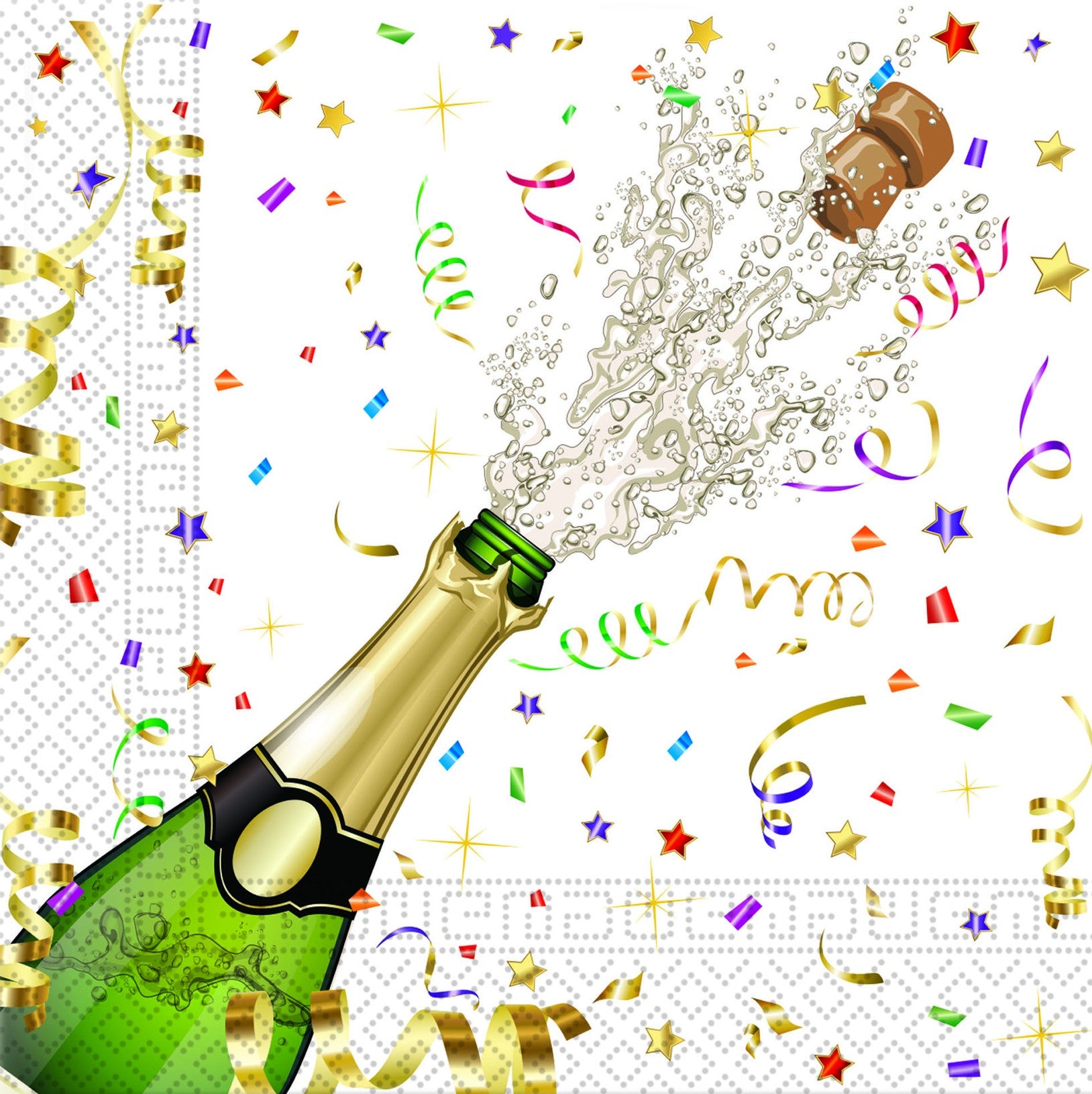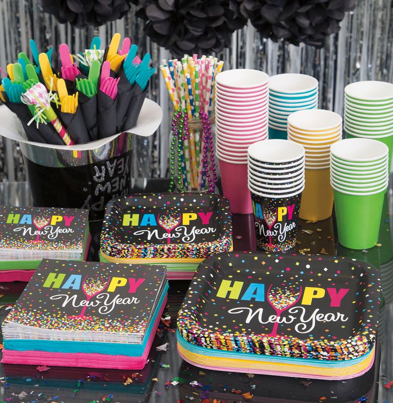 Die Auswahl an Partydekoration in diesem Motiv ist ebenso vielfältig wie ansprechend. Von eleganten Tischdecken mit Champagnerflaschen-Print bis zu Glanz-goldenen Girlanden – jedes Detail trägt dazu bei, eine luxuriöse und festliche Umgebung zu schaffen. Diese klassische Wahl sorgt dafür, dass deine Gäste den Jahreswechsel in einem Ambiente von Eleganz und Freude erleben.