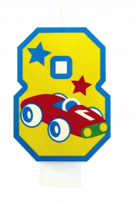 8. Geburtstag Zahlenkerze mit Rennwagen