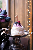Geburtstagskerze Nummer 1 in Roségold auf einem Holzstab, Höhe der Nummer ca. 4,5 cm, Gesamthöhe ca. 9 cm.
