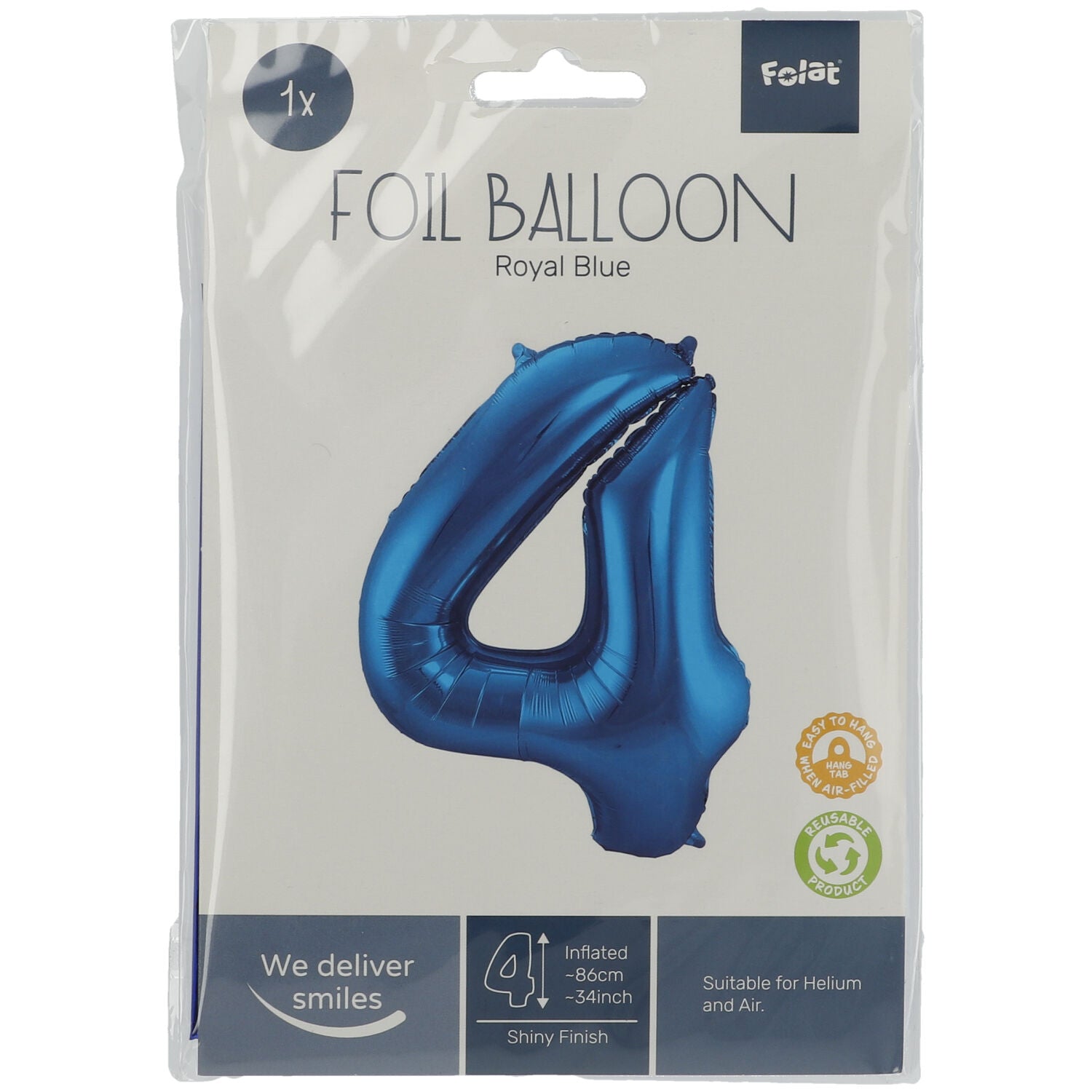 XXL Zahlenballon 4 Blau 86cm
