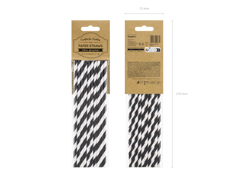 10 Gestreifte Papier Strohhalme schwarz 19,5cm