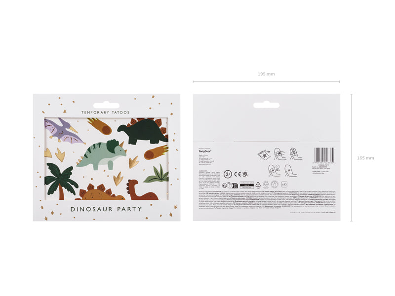 Tauche ein in die prähistorische Welt mit unseren abwaschbaren 'Jurassic Party' Tattoos! Du erhältst einen Bogen mit 13 Motiven, welche sich leicht wieder entfernen lassen. Die Tattoos sind die perfekte Wahl, um die kleinen Geburtstagsgäste auf ein Dino-Abenteuer einzustimmen und den Kindergeburtstag unvergessen werden zu lassen!