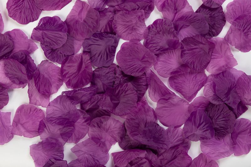 144 Rosenblätter aus Organza Stoff in Lila Pflaume