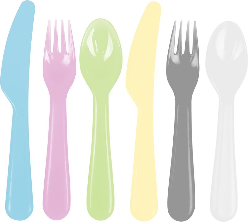 18 Teile Mehrweg Besteck im bunten Pastell Mix
