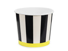 Zwei Party Snackeimer aus Papier. Höhe circa 14 cm, Durchmesser 13-16,5 cm.