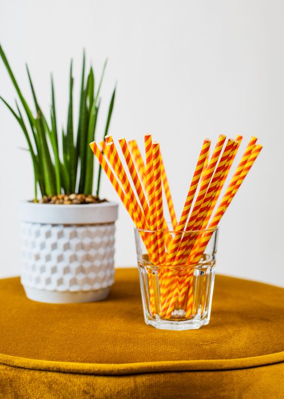20 Papier Trinkhalme Gelb und Rot gestreift