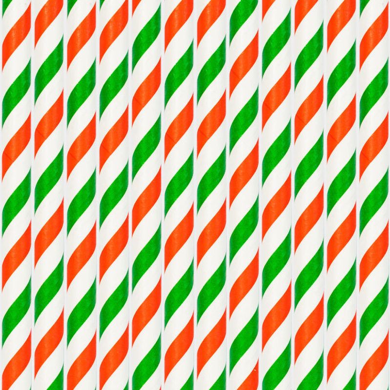 20 Papier Trinkhalme Rot Weiß und Grün gestreift