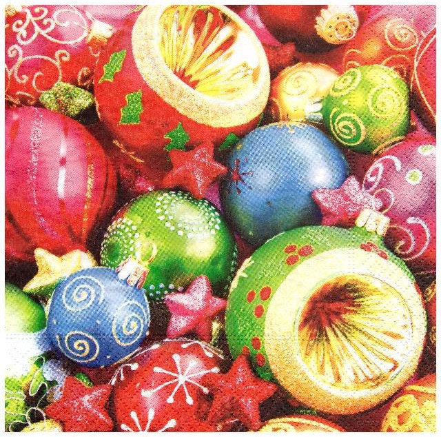 20 Weihnachts Servietten bunte Christbaumkugeln 3-lagig 33x33cm