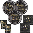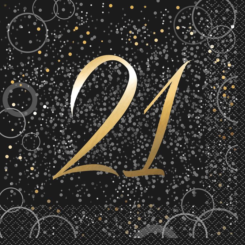 21. Geburtstag 16 Servietten in Schwarz Gold foliert