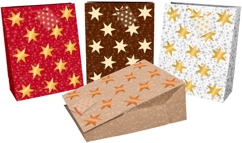4 weihnachtliche Geschenktüten mit goldenen Sternen 33x26cm