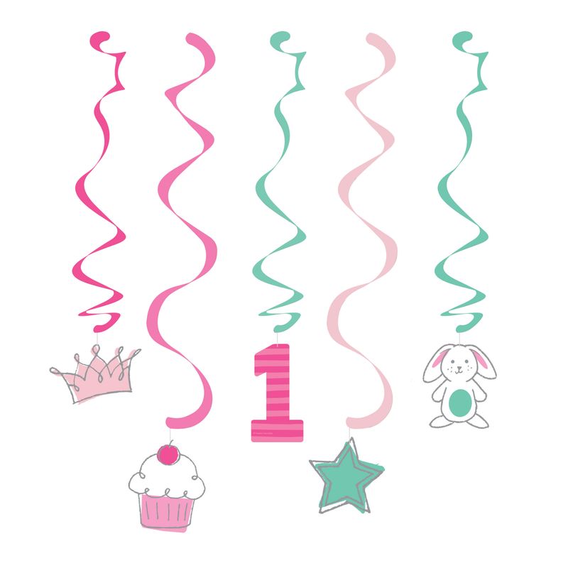5 hängende Girlanden - Doodle in Rosa