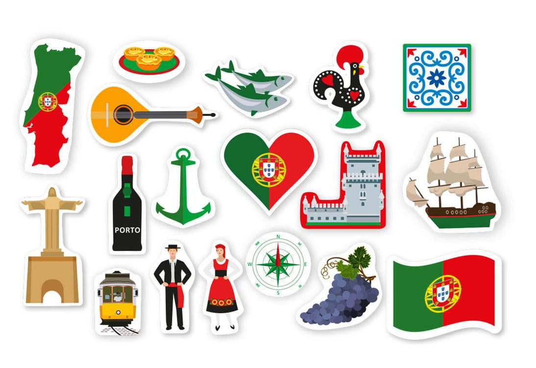 Maritime Motive, Spezialitäten und Sehenswürdigkeiten zieren unsere 54 Portugal Streudeko Elemente Lissabon. Die hübschen Motive sind die ideale Tischdeko für portugiesische Themenabende und die WM. Die Streudeko Elemente sind zwischen 2cm und 5,5cm groß.