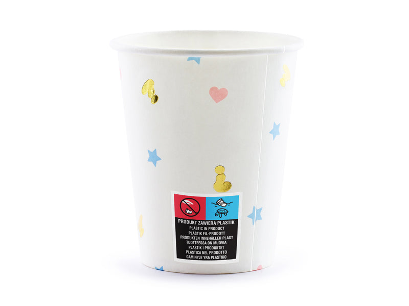 Die Boy or Girl Pappbecher sind ein absolutes Must-have für deine Gender Reveal Party. Die süßen Pappbecher sind mit blauen Sternen und rosa Herzen, sowie goldenen Fragenzeichen verziert und lassen unabdinglich immer wieder die Frage aufkommen: Wird es ein Junge oder ein Mädchen? Du erhältst im 6 Becher mit einem Fassungsvermögen von je 200ml.