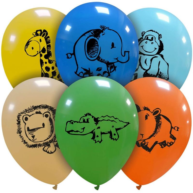 6 bunte Luftballons Safari und Dschungel Tiere