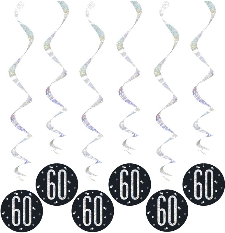 6 hängende Swirl Girlanden Black Dots Glitzer zum 60. Geburtstag