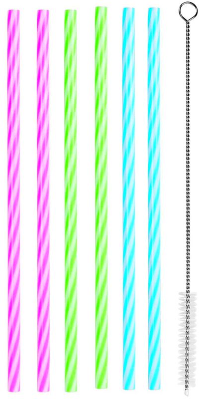 6 Mehrweg Plastik Trinkhalme Pink Grün und Blau Mix mit Reinigungsbürste 23cm