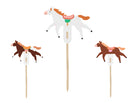 Die 6 Muffin Dekorationen Galoppel mit Pferdemotiven in 13cm sind eine tolle Möglichkeit, deine Muffins aufzupeppen! Sie passen perfekt für eine Pferdemottoparty. Du kannst sie einfach in die Muffins stecken oder auf die Muffins legen, um sie festlich zu gestalten.