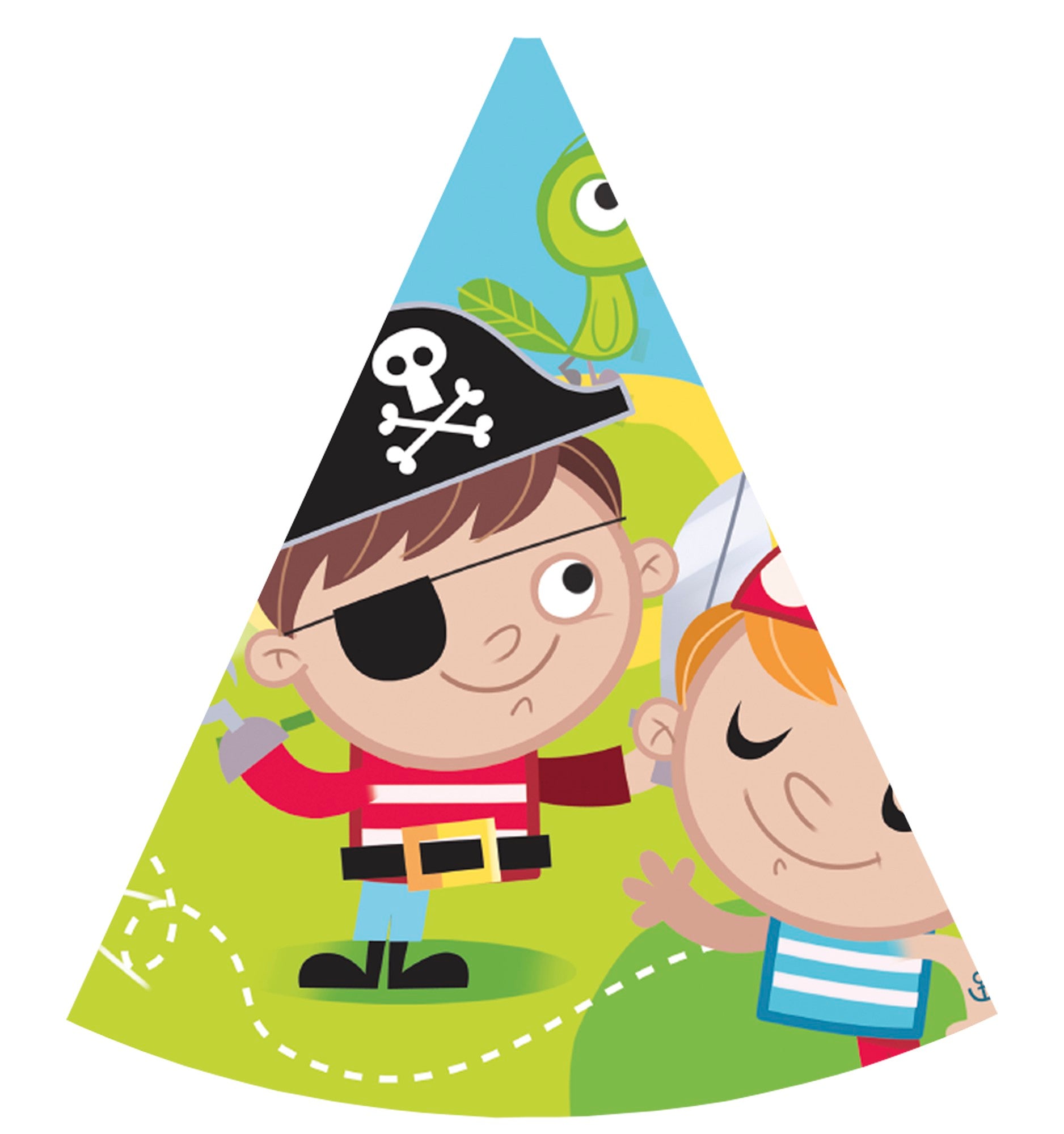 Jetzt wird es ernst! Denn der kleine Pirat Schwarzzahn ist unterwegs! Mit den 6 Partyhüten kannst du deine Piraten Mottoparty toll ausstatten. Das Set bezaubert mit maritimen Piratenmotiven und wird dir und deinen Gästen viel Freude bereiten!
