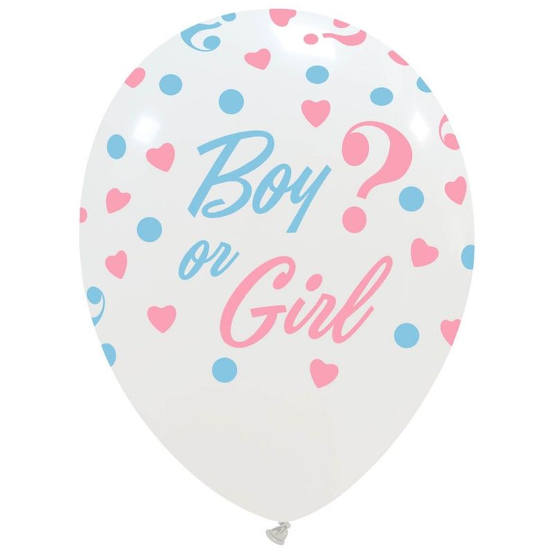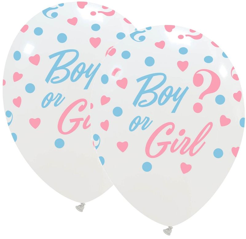 6 weiße Luftballons für die Babyparty Boy or Girl 30cm
