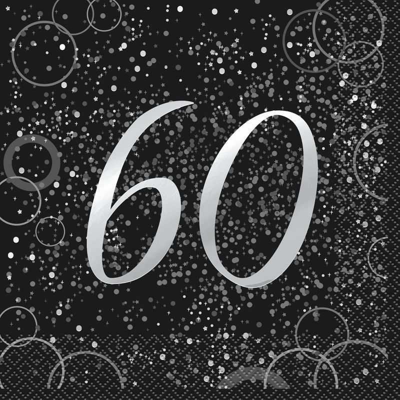 60. Geburtstag 16 Servietten in Schwarz Silber foliert
