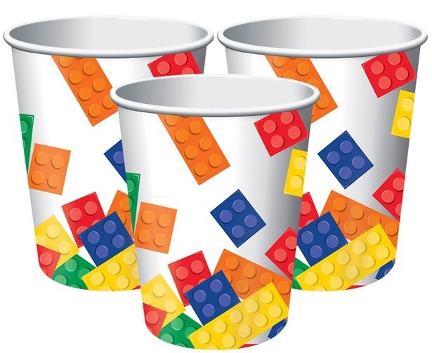 Für alle kleinen Nachwuchs Architekten sind unsere 8 bunten Baustein Pappbecher genau das Richtige zum Kindergeburtstag. Die Becher messen 255ml und sind ideal für kalte Erfrischungsgetränke.