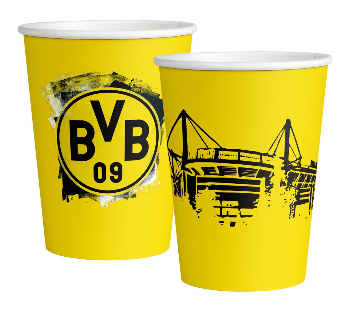 Du feuerst deinen Verein von zu Hause aus an? Dann dürfen die 8 BVB Dortmund Pappbecher auf keinen Fall fehlen. Sie fassen 250ml und sind mit dem Logo sowie dem Stadion verziert. Ein wahres Must-have für die Bundesliga Saison.