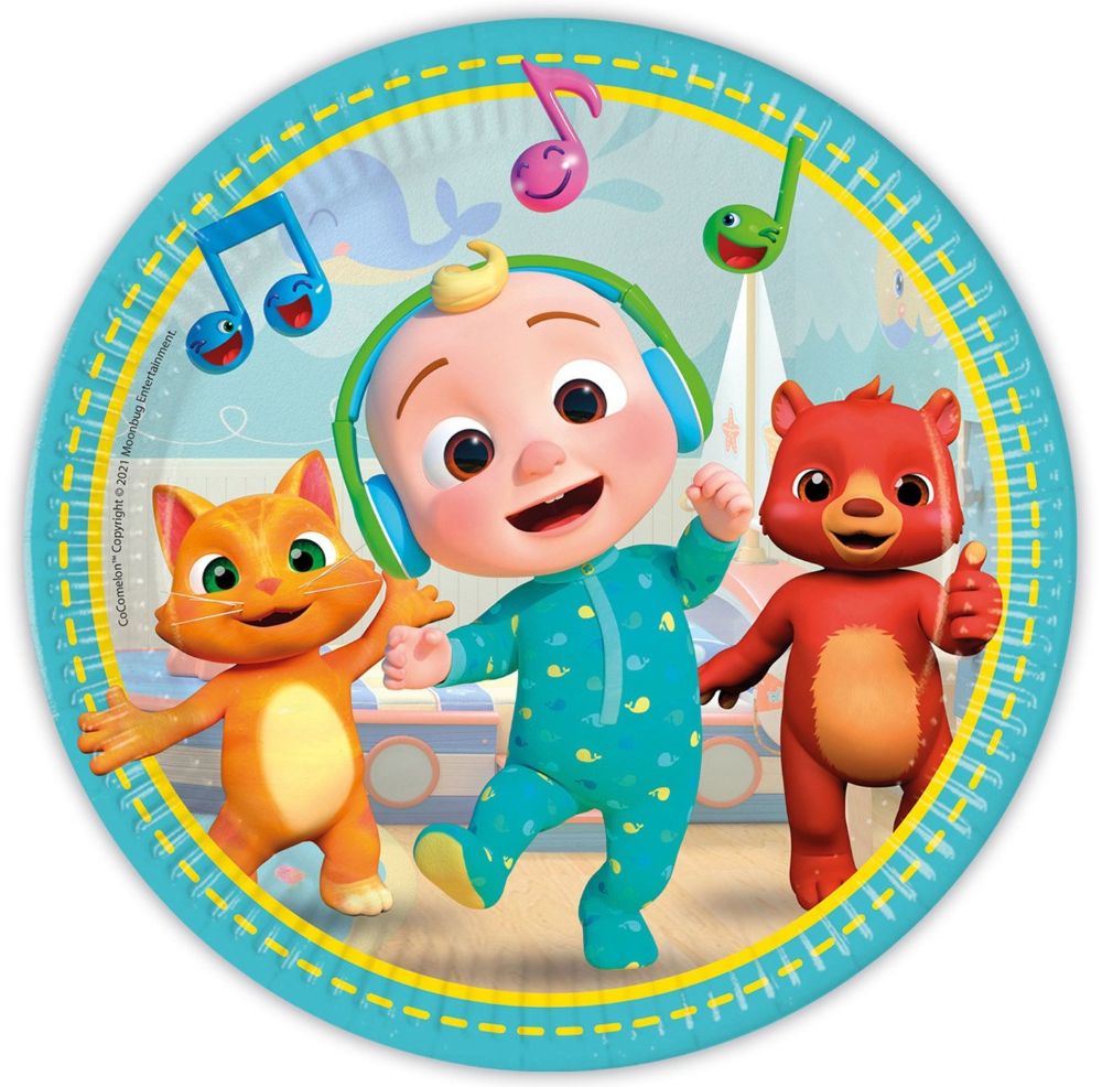 Die Cocomelon Partydeko-Serie bringt mit bunten Motiven und beliebten Charakteren fröhliche Stimmung auf jede Kinderfeier. Von Papptellern und Bechern bis zu Girlanden und Luftballons ? die perfekte Deko für kleine Fans! Im Lieferumfang enthalten sind 8 Cocomelon Pappteller mit einem Maß von 23cm.