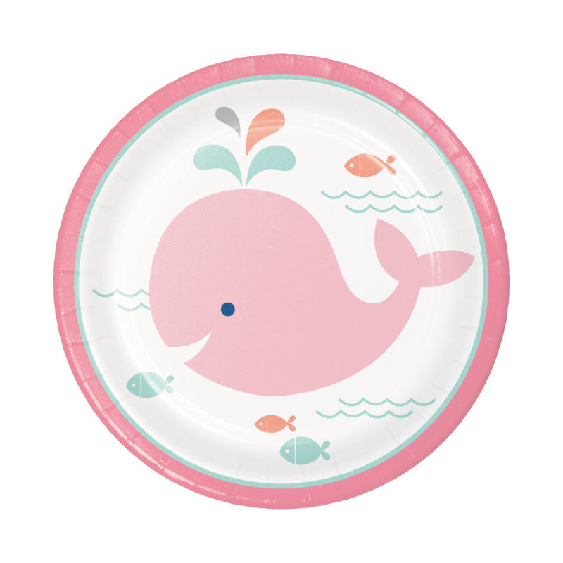 8 kleine Papp Teller Happy Baby Wal Party Pink