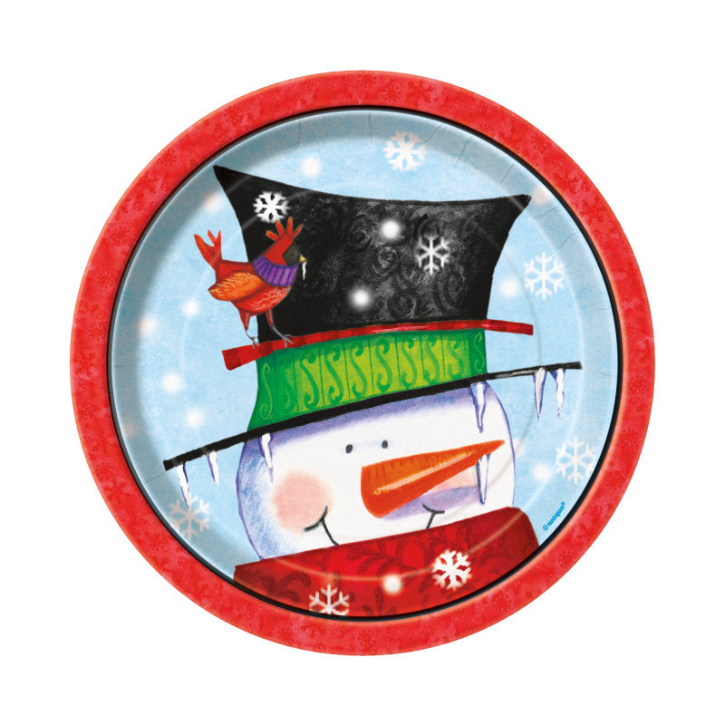 8 kleine Papp Teller Schneemann und Freunde 18cm