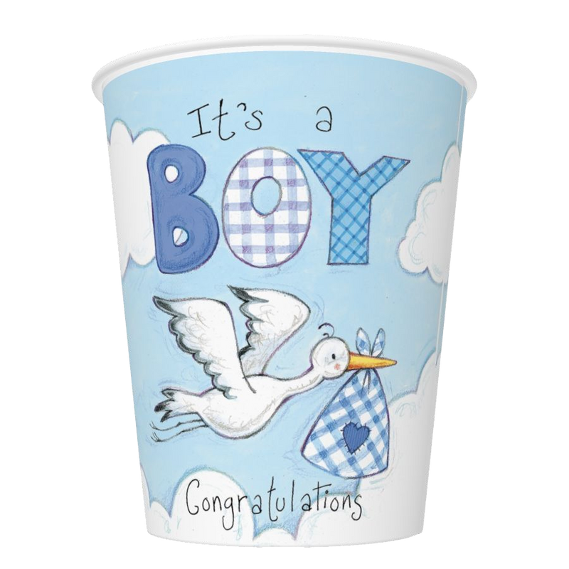 8 Papp Becher Baby Storch Blau