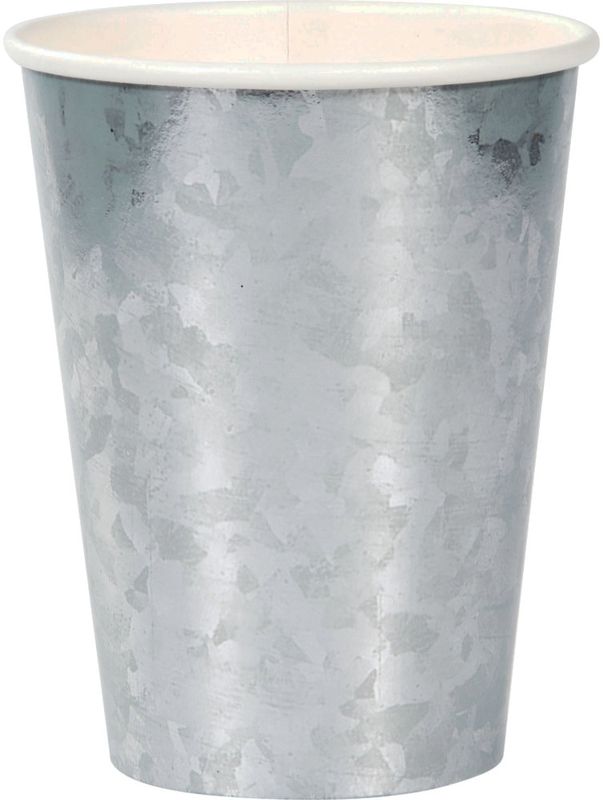 8 Papp Becher in Silber Metallic mit Verzinkt Optik 354ml