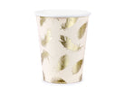 Lovely Swan Papierbecher in Hellrosa mit goldenem Federmuster, Fassungsvermögen ca. 260 ml . Die Getränkebecher müssen die Kennzeichnung gemäß der Durchführungsverordnung (EU) 2020/2151 der Kommission vom 17. Dezember 2020 zur Festlegung von Vorschriften über harmonisierte Spezifikationen für die Kennzeichnung von Einwegkunststoffprodukten, die in Teil D des Anhangs der Richtlinie (EU) 2019/904 des Europäischen Parlaments und des Rates über die Verringerung der Umweltauswirkungen bestimmter Kunststoffprodukte aufgeführt sind, enthalten. Das Produkt enthält ein Etikett nur in Polnisch, Deutsch, Tschechisch, Französisch, Niederländisch, Slowakisch, Slowenisch und Bulgarisch. (1 VPE / 6 Stk.)