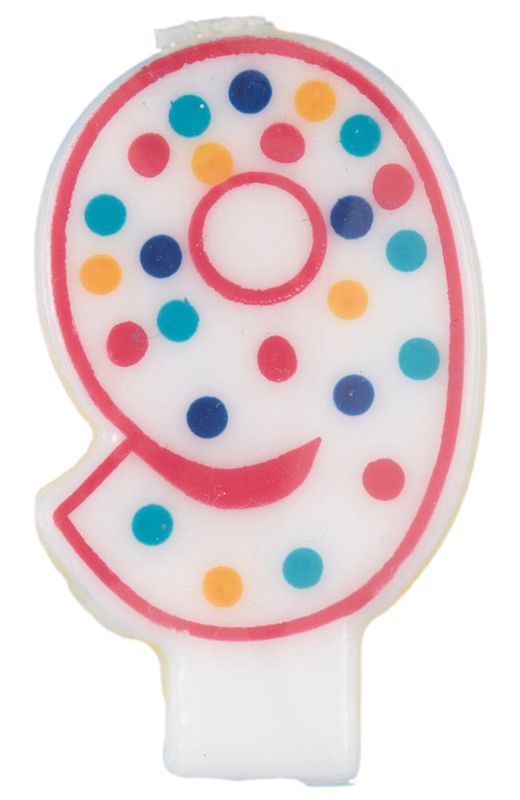 bunte Zahlenkerze 9 mit Pünktchen