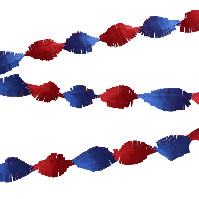 Dreh Girlande aus Krepp Papier in Blau Rot und Weiß 6 Meter