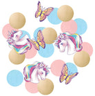 Ein Hauch von Einhorn Magie bringst du mit diesem Einhorn Dreams Konfetti 14g auf den Partytisch der Kinder Geburtstagsparty. Das Konfetti wurde liebevoll gestaltet in verschiedenen Pastellfarben in Form von Einhörnern und Schmetterlingen.