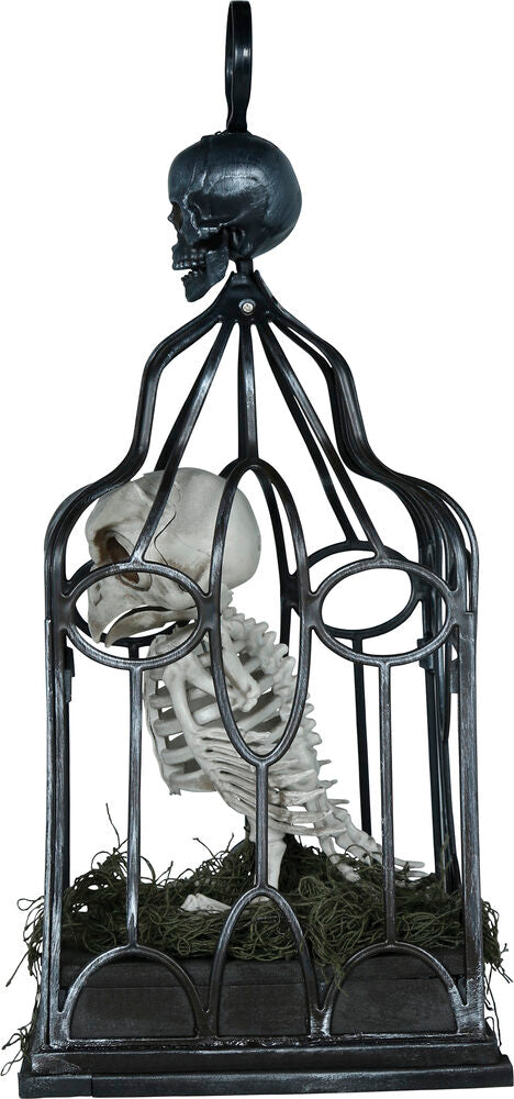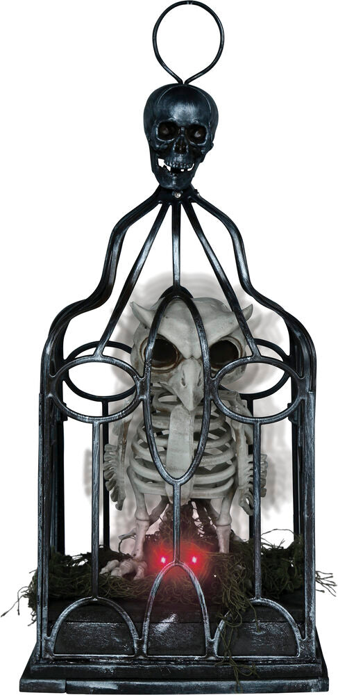 Eulenskelett im Käfig mit Licht/Sound 33cm