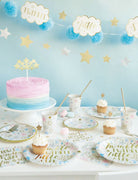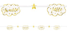 einzelne Pappschilder werden am Satinband aufgefädelt