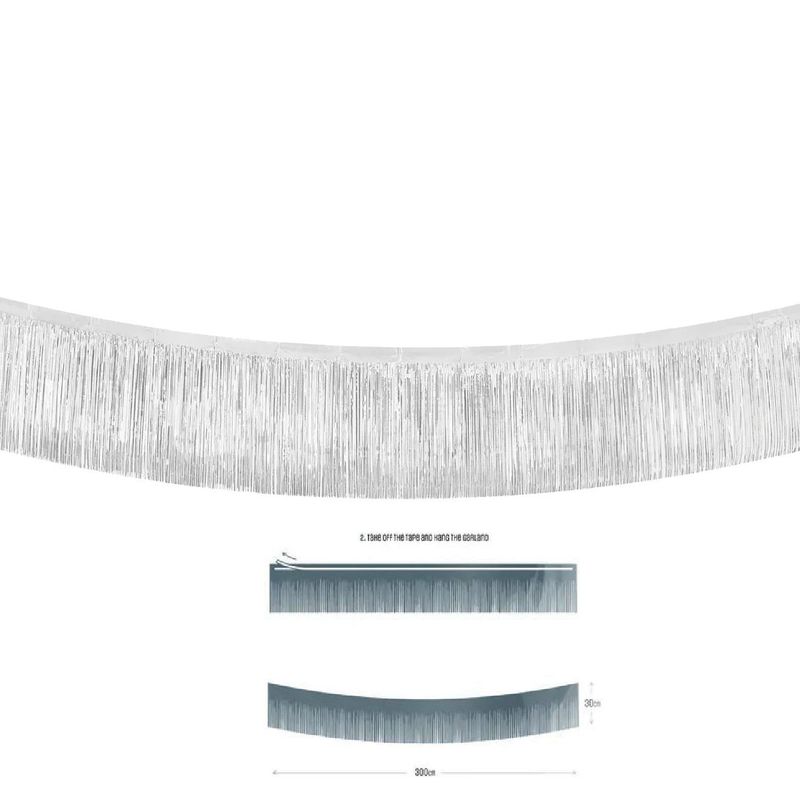 Glitzer Fransen Banner kurzer Party Vorhang in Silber 30cm - 3 Meter breit