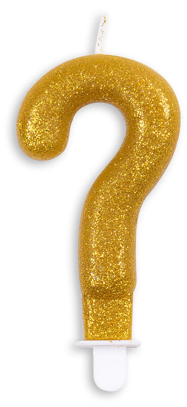 Glitzer Zahlenkerze in Gold Fragezeichen